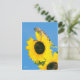 Un goldfinch est perché au sommet d'un tournesol avec un ciel bleu vif.