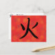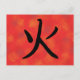 Une belle carte postale avec le kanji au feu. Le sens du kanji est au verso de la carte postale.