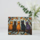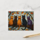 Carte Postale Five Cats on a Tree Branch Stained Glass Style