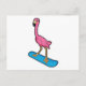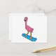 Carte Postale Flamant en snowboardeur avec planche à neige
