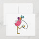 Carte Postale Flamant rose à la musique avec casque
