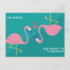 Carte Postale Flamant Rose Bleu Vert Drôle