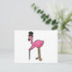 Carte Postale Flamant rose en marié avec chapeau et canne