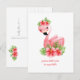 Cartes postales fantaisistes de flamant rose ornées de jolies fleurs tropicales roses pensant à vous. Personnalisez avec votre propre message sur le devant ou laissez tel quel.