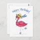 Carte Postale Flamant rose rose mignon et capricieux sur les pat