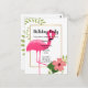 CARTE POSTALE FLAMINGO BRILLANT HIBISCUS BLANC OR ANNIVERSAIRE