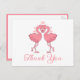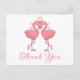 Send your thanks with flamingo joy! This vibrant postcard features a cute flamingo couple sharing a kiss beneath floating hearts, with bold pink feathers and crisp white space. Elegant script and classic black fonts make your message pop, while the tropical vibe adds instant charm.