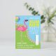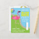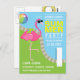 Cartes d'invitation personnalisées pour une fête d'anniversaire au bord de la piscine avec un flamingo rose drôle portant des lunettes de soleil, personnalisables selon les détails de votre événement.