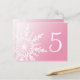Customisez ces fêtes White Snowflake sur les numéros de table d'hiver rose et créez une carte différente pour chaque table à votre réception d'hiver, Janvier ou Février merveilleux thème mariage, douche nuptiale ou fête de fiançailles. Ces cartes de numéro de table personnalisées de classe comportent des flocons de neige blancs complexes avec un arrière - plan de dégradé rose.