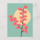 Une tige de fleurs de cerisier rose avec un soleil crème sur un arrière - plan bleu clair.