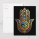 Carte Postale Fleur de couleur de paon Pétales de Hamsa Troisièm