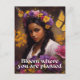 Cet objet plein de vitalité présente une peinture à l'huile d'une belle fille noire portant une couronne florale et entourée de fleurs et de papillons, ainsi que le texte "Fleur où vous êtes plantés." Une oeuvre d'esthétique fleurie colorée avec roses, violets, jaunes et oranges.