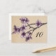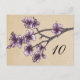 Mariage en fleurs de cerises douces et Vintages Numéro de table Carte postale avec de jolies branches de fleurs de cerisier lavande sur un arrière - plan en papier beige imitant texturé. Cette élégante carte à fleurs japonaise est parfaite pour un mariage simple et sophistiqué de printemps ou d'été. Facile à customiser, il suffit d'ajouter le ou les numéros de table appropriés dans les champs de texte fournis. Cliquez sur "Customiser" pour trouver d'autres options de personnalisation.
