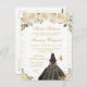 Cette invitation élégante et glamour pour les douze ans de la princesse présente une belle princesse aux cheveux noirs et à la peau foncée dans une robe de bal noire. Le texte combine une écriture manuscrite et des polices modernes sans serif pour un look classe et sophistiqué. Les arrangements floraux, les papillons et les confettis dorés créent le mélange parfait de rustique et de chic.