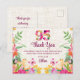 Envoyez une appréciation chaleureuse après un anniversaire marquant avec cette carte postale florale élégante. Doté de fleurs d'aquarelle vives sur un arrière - plan de lin doux avec un "95" audacieux, ce design personnalisable est la façon parfaite de remercier les invités et les proches. Bon appétit !