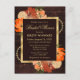 Magnifique conception florale de fleurs automnales aquarelles rustiques orange brûlé sur fond en bois brun avec bordure en feuille d'or