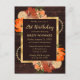 Magnifique conception florale automnale de fleurs d'automne aquarelle rustique orange brûlé sur un fond en bois brun avec une bordure en feuille d'or