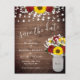 Ce design comprend un vase en bocal de mason rempli de roses bordeaux / rouge foncé, des tournesols et le souffle de bébé sur un arrière - plan en bois rustique avec des lampes à cordes. Cliquez sur le bouton personnaliser pour plus de flexibilité dans la modification du texte. Des variantes de cette conception, différents types de papier qui *do* incluent des enveloppes, ainsi que des produits de coordination sont disponibles dans notre boutique, zazzle.com/store/doodlelulu. Contactez-nous si vous avez besoin que cette conception s'applique à un produit spécifique pour créer votre propre article de correspondance unique! Merci tellement pour voir un DoodleLulu par 2 june conception de bogues!