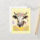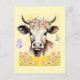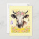 Belle carte postale de vache avec une vache avec des fleurs, papillon et libellule, sur un arrière - plan jaune de beurre. Très agréable pour quelqu'un qui aime les vaches.