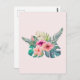 Carte Postale Fleurs d'hibiscus rose tropical à l'aquarelle