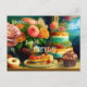 Carte Postale Fleurs et gâteaux fête d'anniversaire