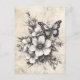 Carte Postale Fleurs et papillons rustiques - Papier vieilli (5)