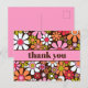 Fleurs colorées groovy rétro florales des années 60 70 Motif de fleurs rose et marron. Mignon et joyeux, avec une ambiance vintage des années 1960 1970. Le texte « Merci » peut être personnalisé / adapté. Par Kierkegaard Design Studio.