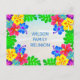 Carte postale familiale avec texte personnalisé et fleurs tropicales. Des membres de la famille Invitation se rassemblent à la plage pour une réunion. Petite ou grande, pour un événement d'une semaine ou un seul après-midi, cette carte aux couleurs vives est à l'honneur.