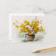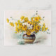 Carte postale inspirée d'une aquarelle de l'artiste floral Paul de Longpré, appelée Daisies et Bachelor's boutons. L'image montre un vase décoratif rond débordant de jolies fleurs jaunes et blanches. Utilisez pour les anniversaires et autres célébrations, ou quand vous voulez répandre un peu de soleil! :)