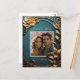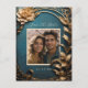 Capturez la magie de votre histoire d'amour avec ces enchanteurs Save the Date photo carte postale de la Collection de Mariages Théâtrales Reverie. Immergez votre photo fiançailles dans un cadre de feuillage métallique en cuivre doré, dressé contre un arrière - plan bleu texturé et subtilement orné. Évoquant le charme des théâtres vintages et de la mascarade, ce design ajoute une touche de théâtre à votre faire-part.