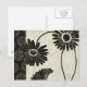 © Daphne Brissonnet / Pomme sauvage. Trois fleurs en fleurs, en noir et blanc. L'image a un arrière - plan à motifs floraux dans une ombre blanche cassée et noir sur le côté gauche.