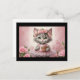 Carte Postale Fleurs roses Kitten en robe