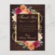 Cette carte de remerciement élégante et chaleureuse présente un riche fond en bois rustique encadré de florales automnales vibrantes aux teintes d'orange brûlé, de rouge profond, de pêche et de crème. Un cadre doré raffiné met en valeur votre message de manière splendide, créant une façon sincère et élégante de remercier vos invités d'avoir célébré avec vous. Parfait pour les anniversaires d'automne, les lieux de réception dans une grange, les rassemblements en plein air ou pour quiconque aime l'esthétique de l'automne cosy avec une finition soignée et sophistiquée. Personnalisez le nom et le message pour créer un souvenir significatif que vos invités apprécieront.