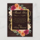 Superbe Rustique Aquarelle brûlée orange et rouge automne fleurs design floral sur un arrière - plan de bois brun avec bordure de feuille d'or