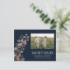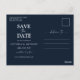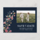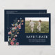 Fleurs sauvages de la Marine Enregistrer la date avec carte postale photo. Cette carte postale élégante et stylée pour enregistrer la date comporte de superbes fleurs sauvages aquarelles peintes à la main. Trouvez des articles assortis dans la collection Navy Blue Wildflowers Dreams.