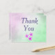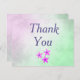 Ce merci fleurs violettes merci carte postale affiche un bel arrière - plan parchemin pourpre et vert dégradé avec "Merci" écrit au centre en utilisant la police violette. Achetez le vôtre aujourd'hui ! Oeuvre florale créée par : AMBillustrations http://www.etsy.com/shop/AMBillustrations/