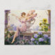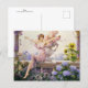 Carte postale d'art avec le tableau Flora (1913), de l'artiste française Louise Abbéma (1853-1927). Un portrait de Flora, qui dans la mythologie romaine était la déesse du printemps et des fleurs. Elle est entourée d'hydrangées violettes, de roses et de tournesols.