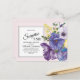 Elégante et botanique violet et jaune aquarelle fleurie sur rose surprise 75e anniversaire invitation carte postale.
