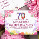 Floral Elegant 70th Birthday Enregistrer La Date 70 Carte Postale. Annoncez un jalon spécial avec cet élégant 70e anniversaire enregistrer la carte de date. Doté d'un numéro 70 fleuri, de fleurs pastel douces et d'une typographie classique, ce design est parfait pour donner le ton d'une célébration de soixante-dixième anniversaire. Personnalisez-vous avec les détails de l'événement et envoyez un rappel élégant à vos invités. Bon appétit !