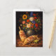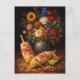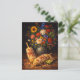 The strong contrast between the dark backdrop and the colorful florals creates a striking, fine art feel, while the rich textures and warm tones add energy and depth to the composition. Inspired by traditional still life painting, this design offers a modern, artful take on everyday food and floral subjects.