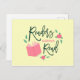 Idéal pour les amateurs de livres, cette jolie carte postale de livres contient les mots "Lecteurs Gonna Read" entourée d'un livre ouvert, de roses roses et de feuilles verts contre un arrière - plan jaune.