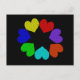 Cette carte postale présente l'image numériquement d'un cercle de coeurs d'amour. Chaque coeur est une couleur différente de l'arc-en-ciel. Les coeurs rouge, orange, jaune, vert, bleu, indigo et violet sont une façon ludique et éclatante d'exprimer votre amour pour un petit ami, une petite amie, un mari ou une femme. L'arrière - plan est noir pour créer un impact maximum.