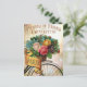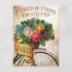 Une charmante carte postale florale montrant un design français d'un panier de fleurs sur un vélo.