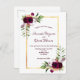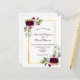 Devant : Un arrière - plan blanc avec un cadre en faux or. Décoré de fleurs bordeaux foncé, de roses, de plumes de style boho et de verdure. Modèles pour Vos noms et les détails mariages. Les noms sont écrits avec un script de style écrit à la main, des lettres de couleur boucane.