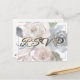Belle carte postale RSVP florale pastel avec des fleurs rose et hydrangéennes d'aquarelle sophistiquées et peintes à la main, dans des tons pastel doux, bleu fumée, blanc cassé, jaune marigé muet, et rose roux agrémenté d'accents de verdure aux lauriers botaniques. Cette belle mise en page présente vos détails sur une simple ardoise bleue superposée dans un script classique moderne propre. Pour d'autres couleurs ou produits correspondants, veuillez visiter le magasin JustFharryn Zazzle, ou contacter le concepteur, c/o Fharryn@yahoo.com Tous droits réservés. #bohochic #zazzlemade
