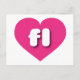 Cette carte postale est dotée d'un coeur rose chaud et vibrant contenant les lettres coques inférieures pleines d'audace, blanches et arrondies fl, une abréviation ludique pour l'état de Floride, l'état de soleil.