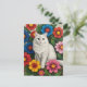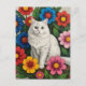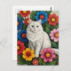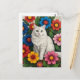 Carte Postale Fluffy Chat blanc et Fleurs d'Art folklorique