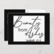 Faites une déclaration audacieuse avec notre design de carte postale moderne avec des blocs noirs et blancs sur le devant. Dans l'écriture élégante, le message de foi dit "Beauté des cendres" - d'Isaïe ce verset incarne la résilience et l'espoir. A l'arrière, une palette de couleurs fractionnées poursuit l'esthétique épurée, avec du noir d'un côté et du blanc de l'autre. Le texte personnalisable gris clair se distingue de l'arrière - plan noir, permettant un message minimaliste mais impactable. Cette carte postale est parfaite pour véhiculer une grande déclaration avec un design minimal, ce qui la rend idéale pour partager des mots d'inspiration, d'encouragement ou de gratitude de manière élégante et contemporaine.