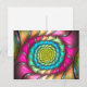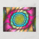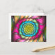 Carte postale avec "Party Melt", une fractale abstraite de l'Apophyse par Susan Wallace. Copyright © 2008, Susan Wallace. spirale arc-en-ciel dans les tons néons vifs rose, vert, turquoise et jaune avec les reflets d'un motif répétitif.