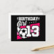 Cette conception de fête d'anniversaire de football est parfaite pour une fête d'anniversaire sur le thème de football d'une fille de 13 ans pour célébrer son 13e anniversaire ! Idéal pour les enfants qui aiment jouer au football, regarder le football ou les futurs joueurs de football stars ! Comprend un ballon de football sur un graphique de terrain de football avec le numéro 13 pour les 13 ans d'une fille.